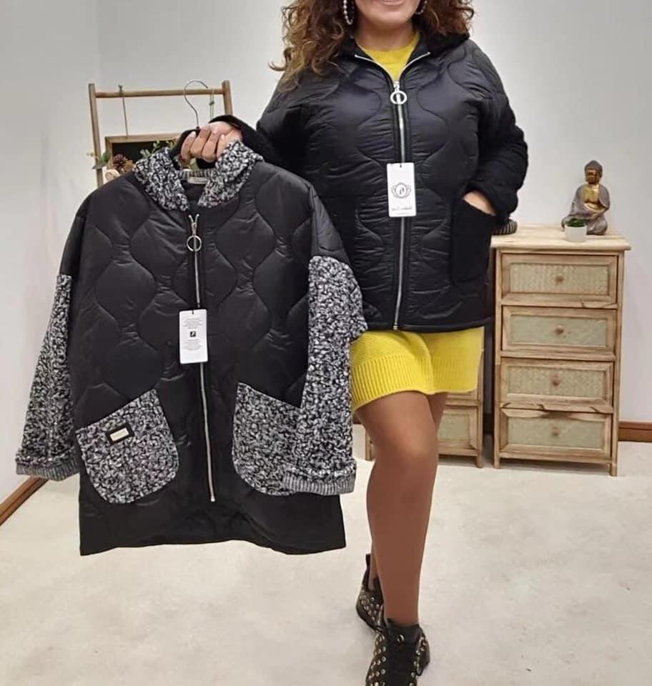 • Chiusura con zip frontale e dettaglio metallico circolare